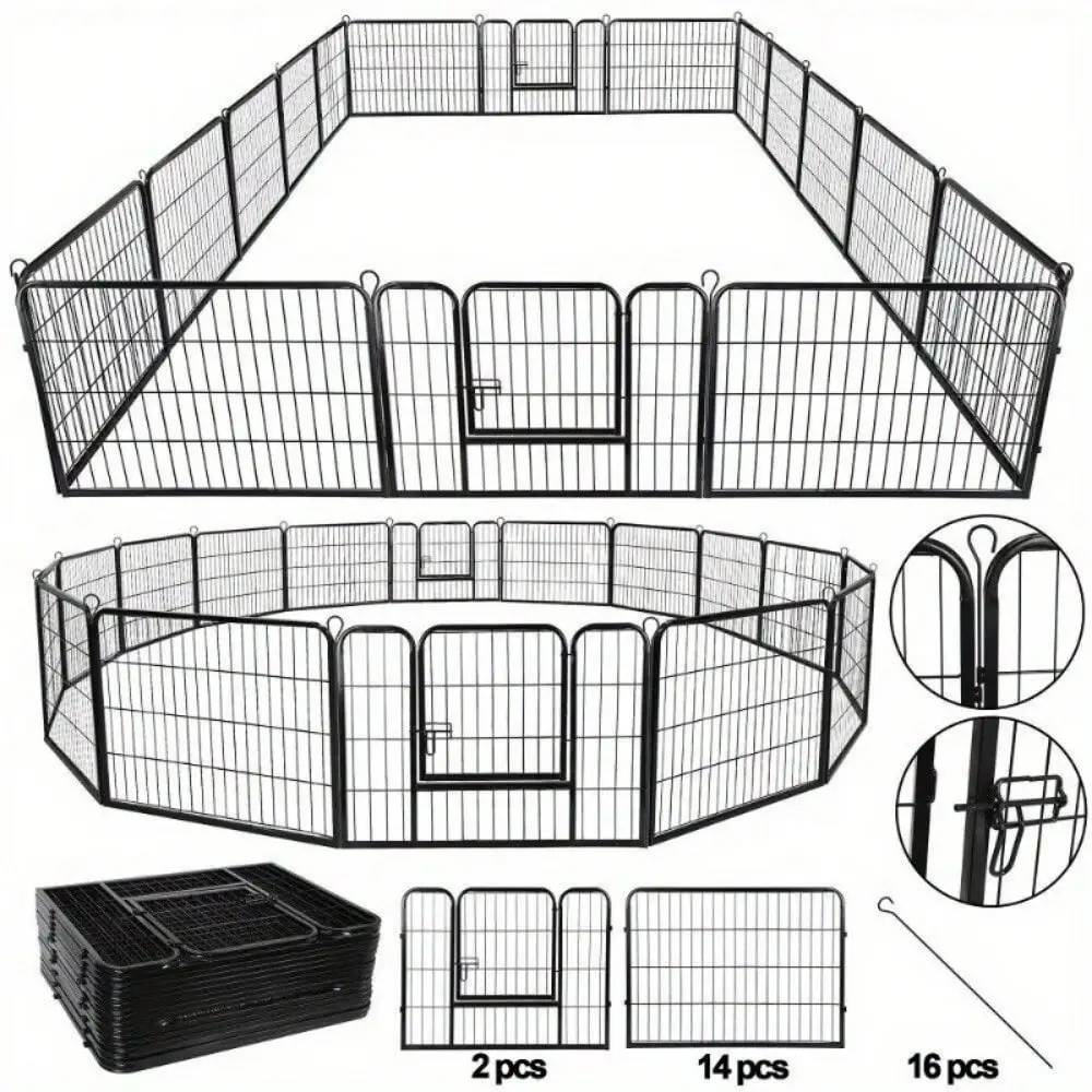 16 Panel Heavy Duty Metal Cage Crate Pet Dog Cat Fence Exercise Playpen Kennel