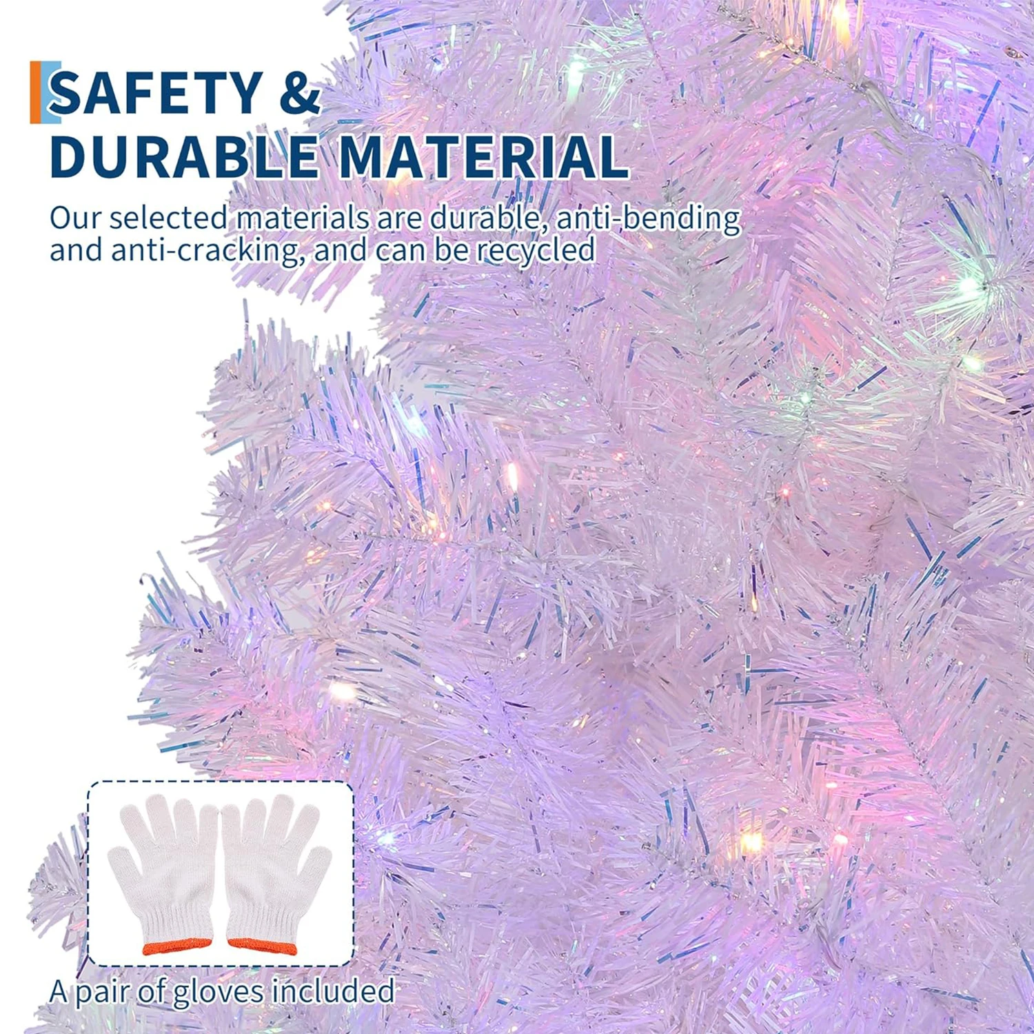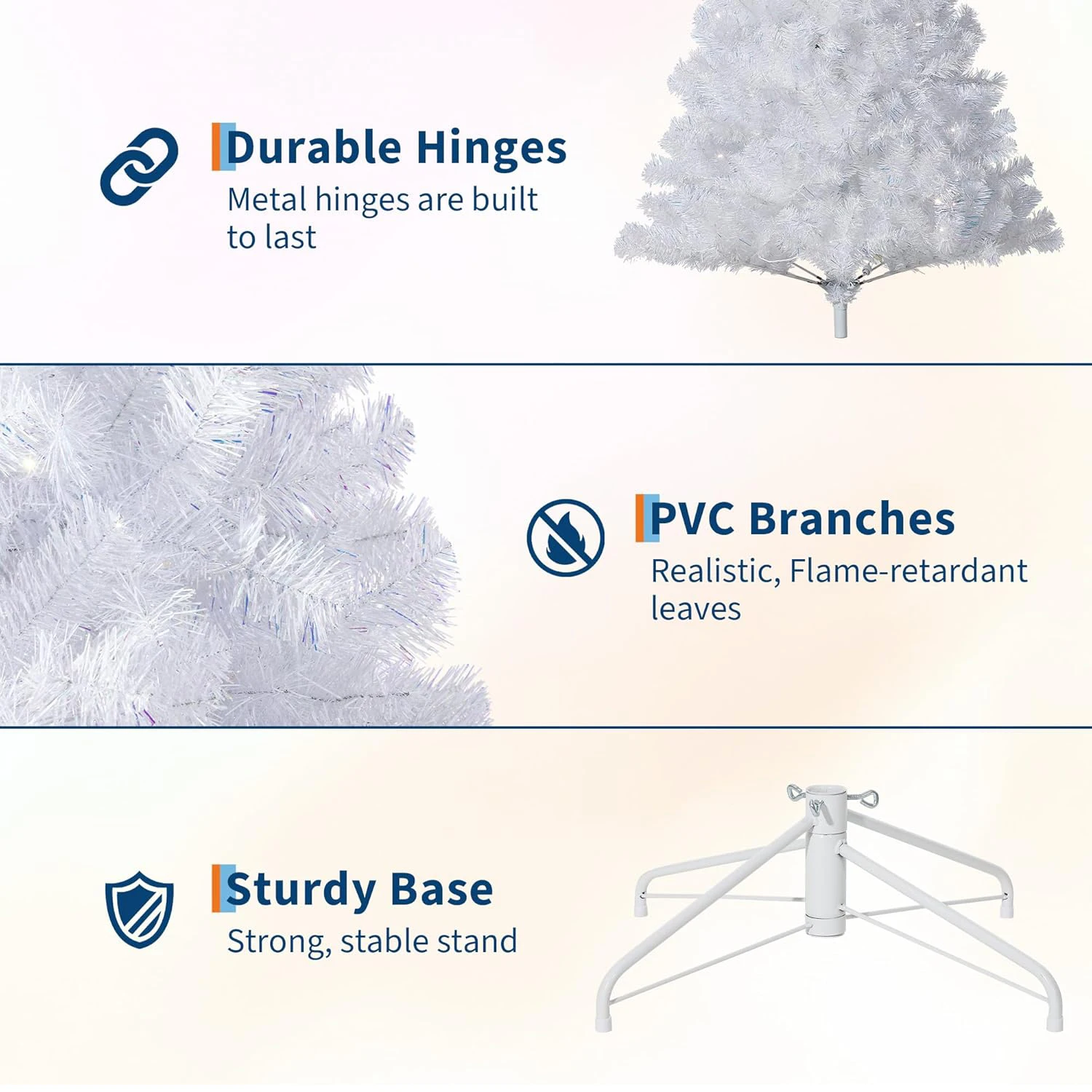 ๐Prelit with LED Lights: ย Brighten your home or office with energy-efficient LED lights. ย The artificial white Christmas tree ensures easy setup and a warm, cheerful glow throughout the holiday season